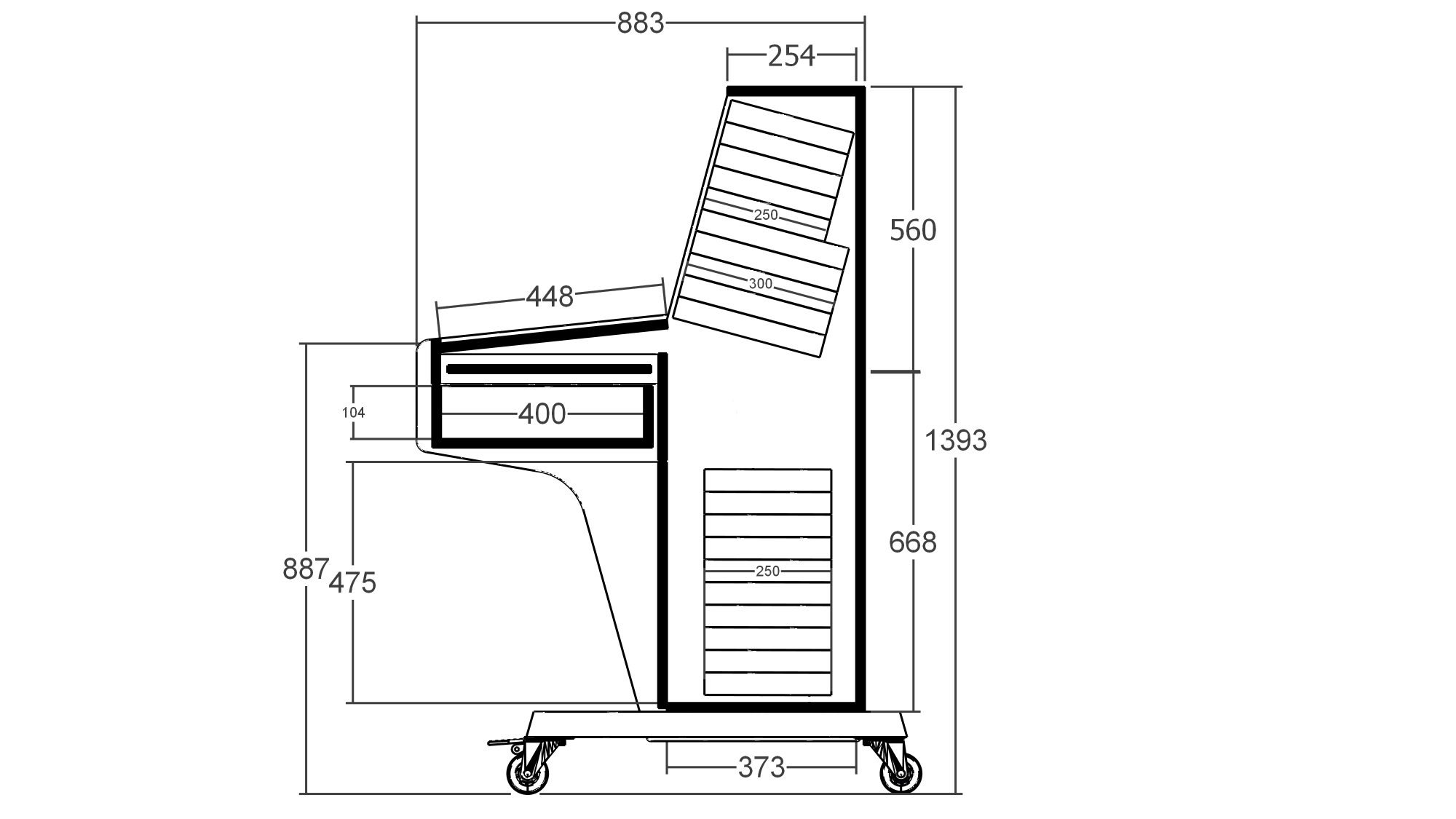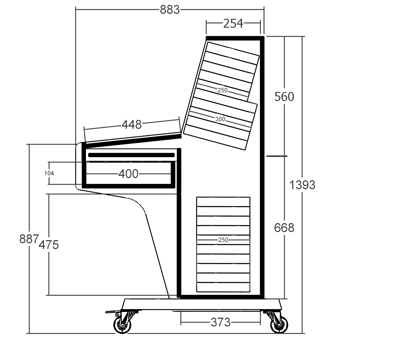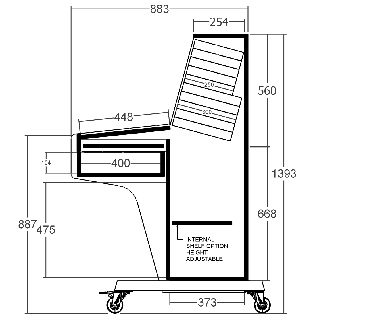 - Drawer internal dimensions 463x400x104mm.