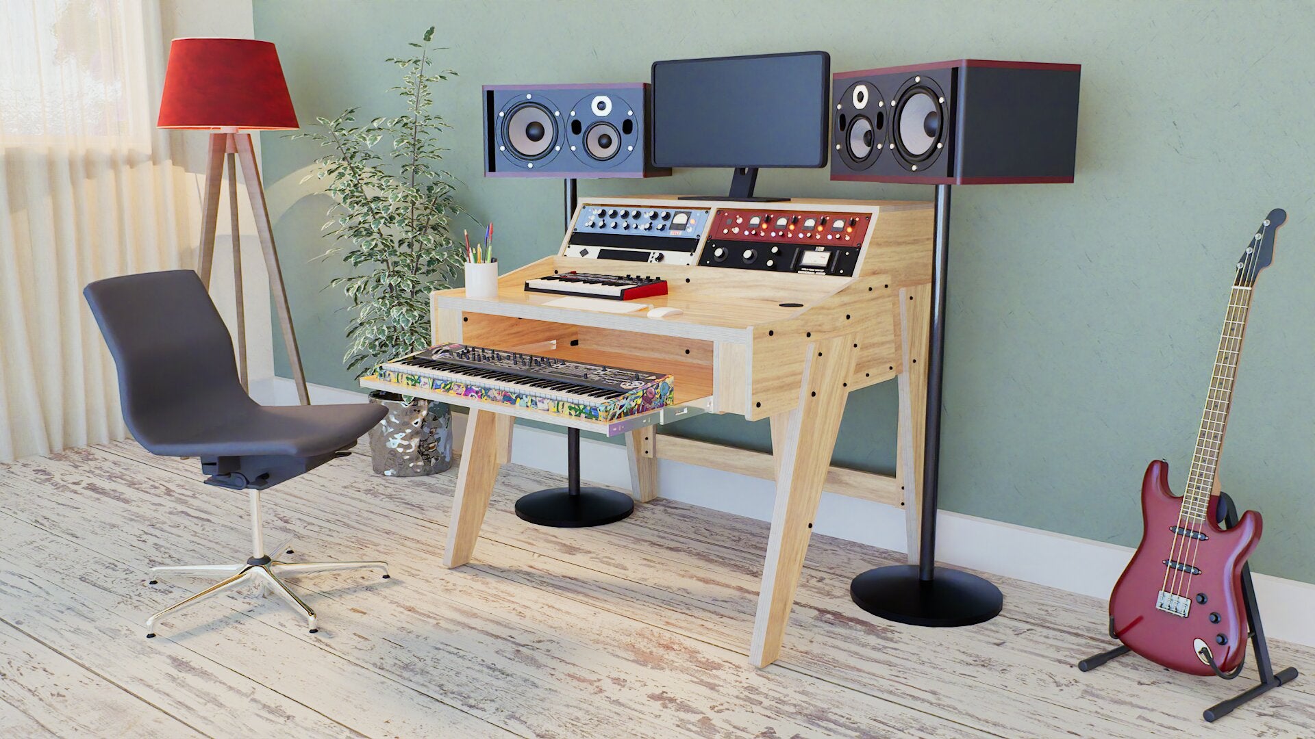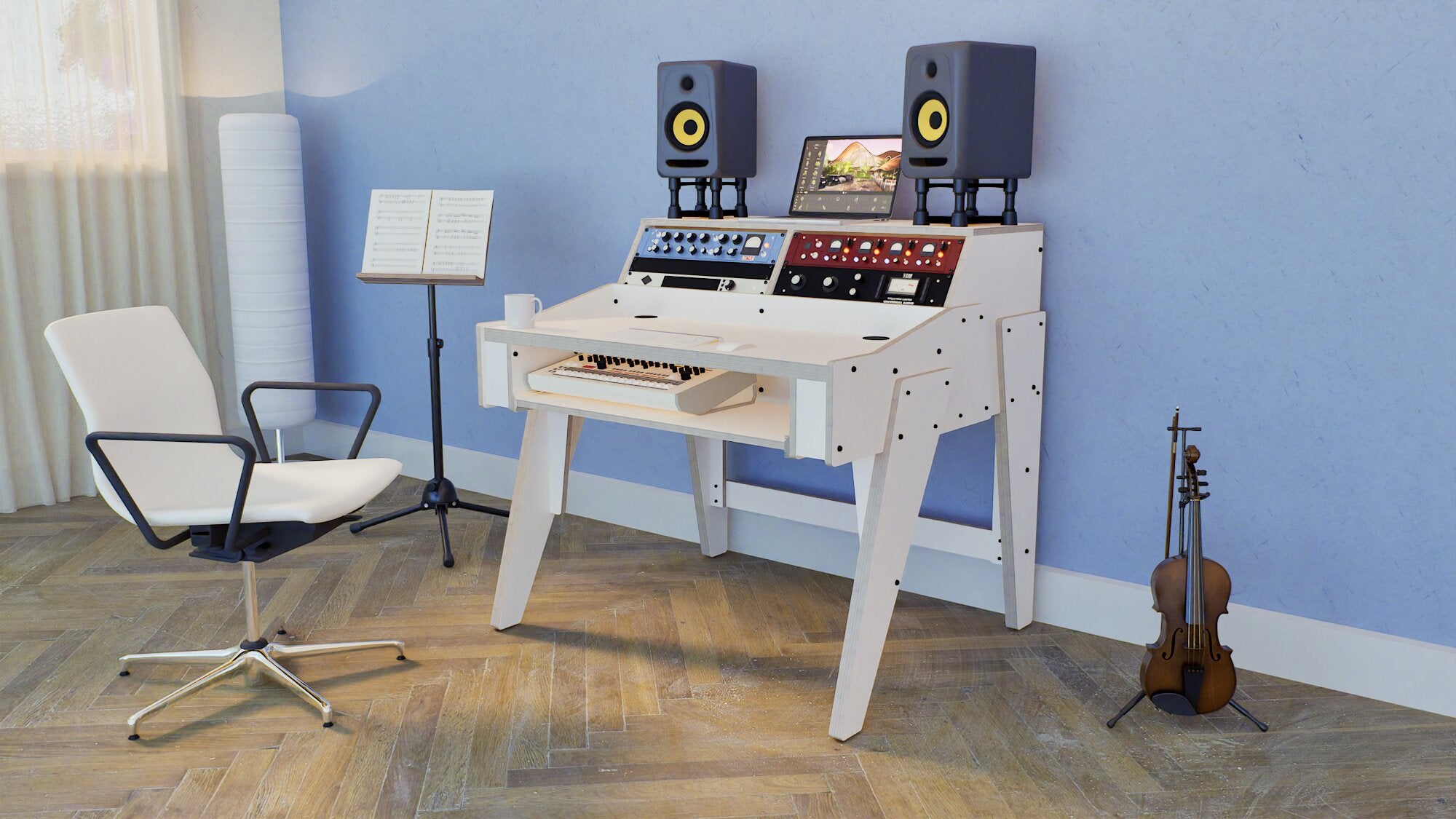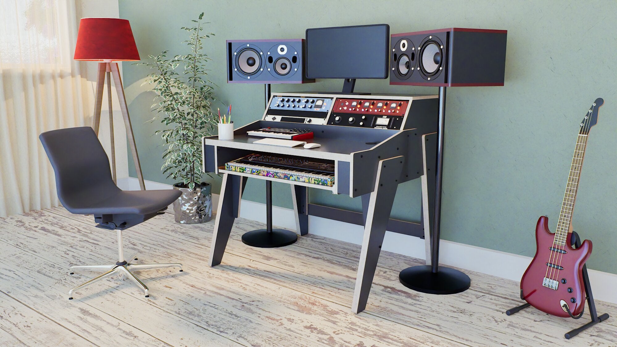 The Europa 2B studio desk is designed primarily for the home producer. It features two bays of four rack units and a sliding keyboard tray. Suited to the bedroom or the study and rooms of multi purpose, its big feature set and small footprint will help tidy up your creative space.