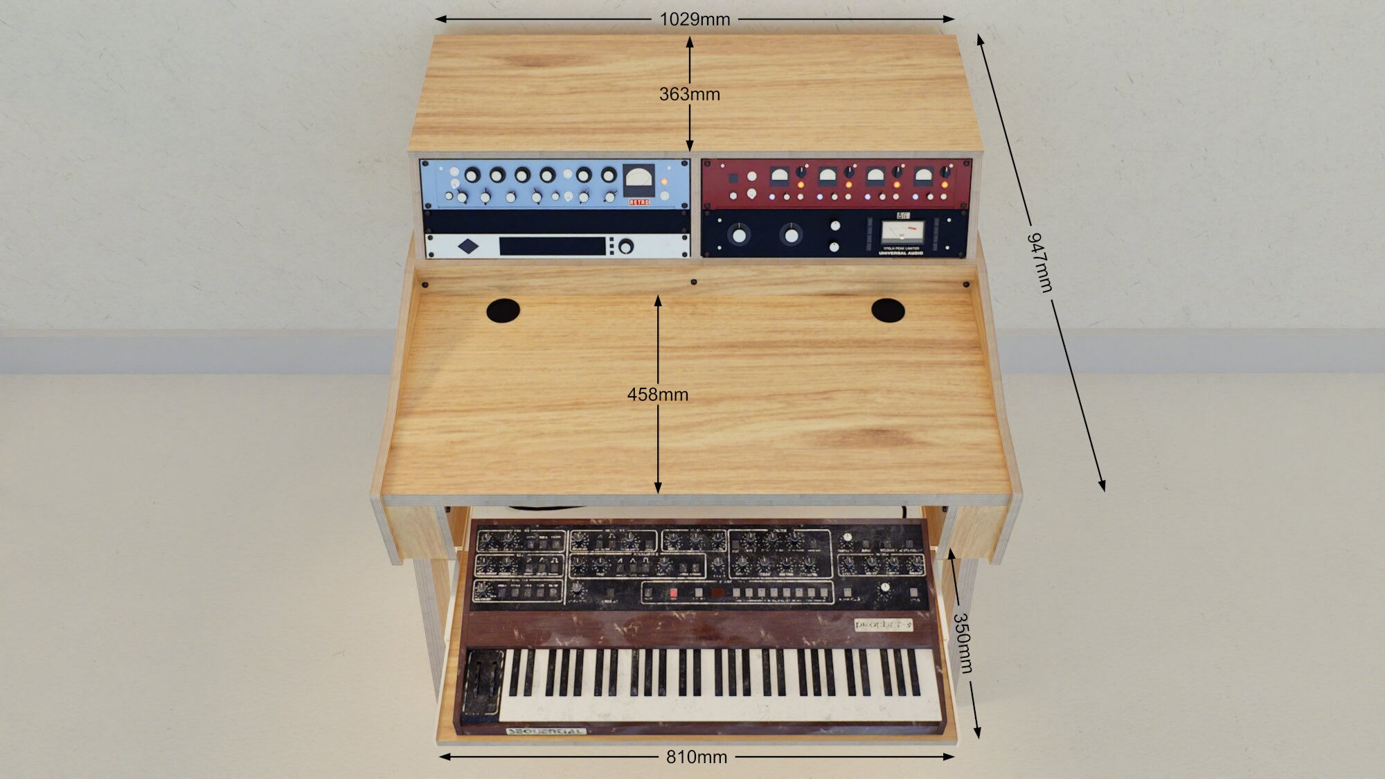 - Lower most rack units are raised above the height of the desktop by 77mm which means your equipment on the desktop will not obscure your outboard gear.