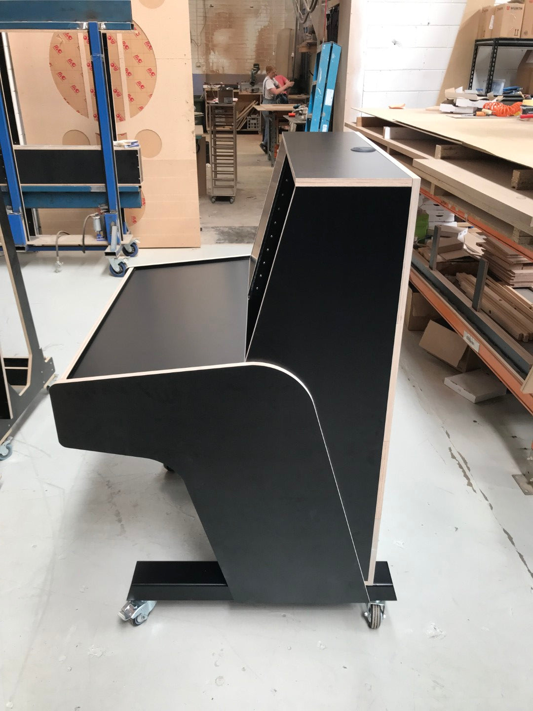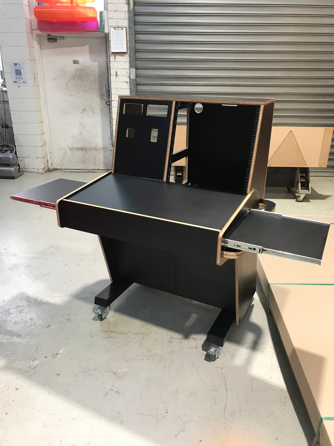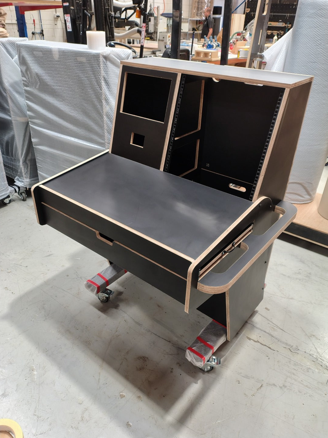 - Timber plate adjacent to the rack may be machined to provide cut-outs for specific A/V equipment