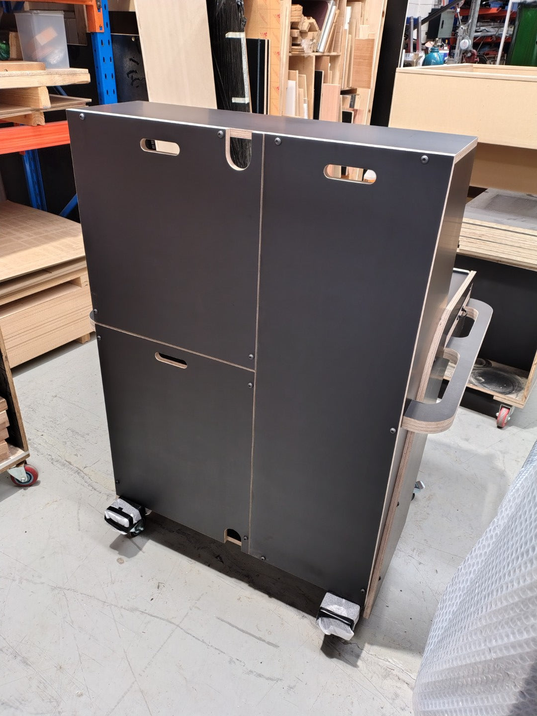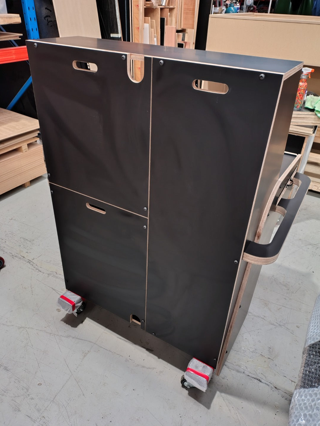 - Extremely sturdy construction, made from steel and film faced, finger print resistant plywood
